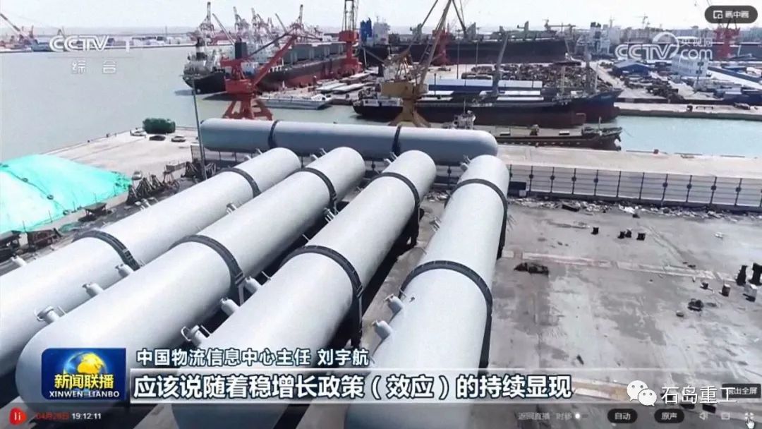 威海石島重工制造“巨無霸”四件套重裝啟運